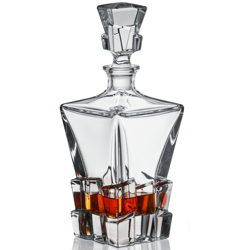 Karafa na whisky z olovnatého krištáľového skla je zdobená zátkou v rovnakom dizajne. Vhodné ako darček.