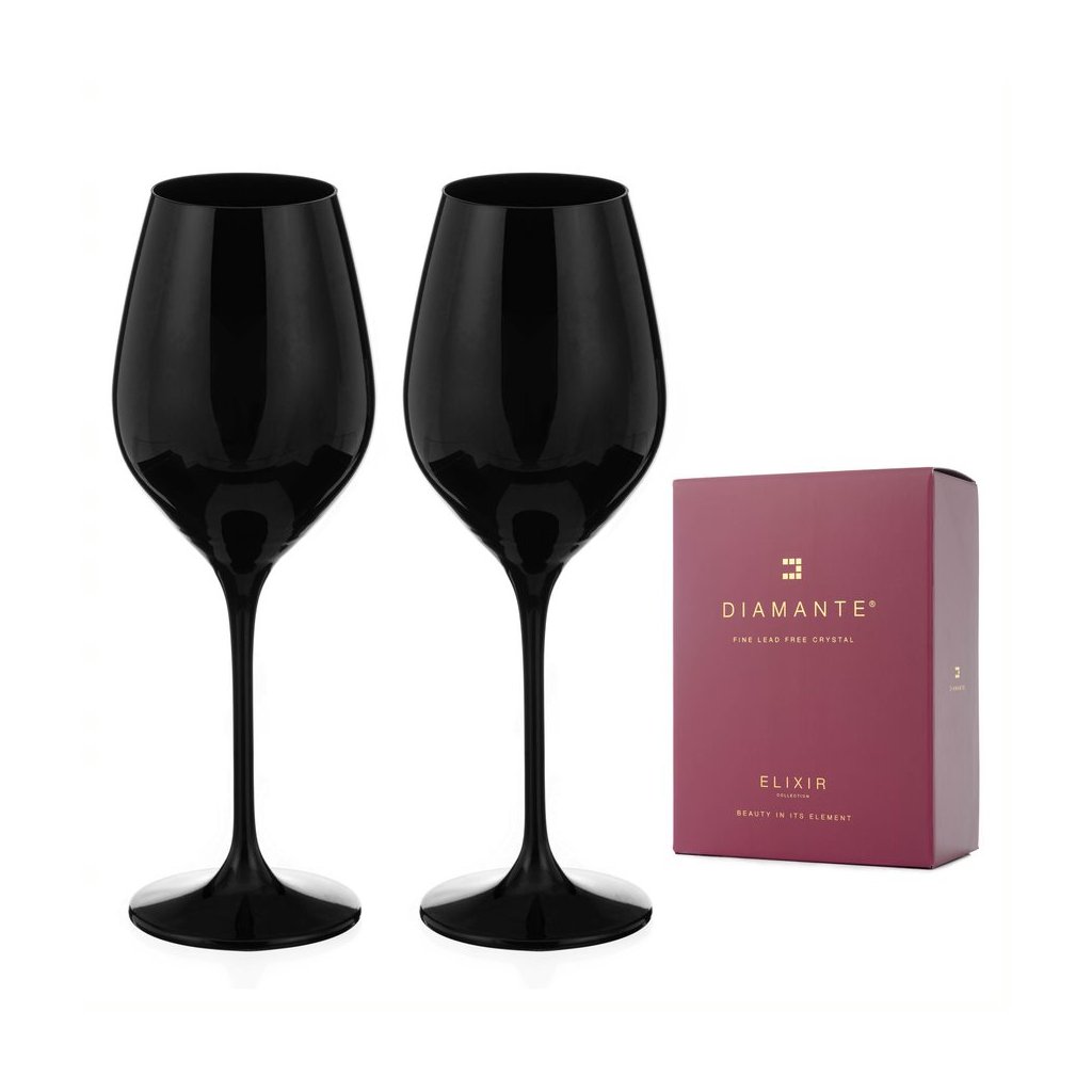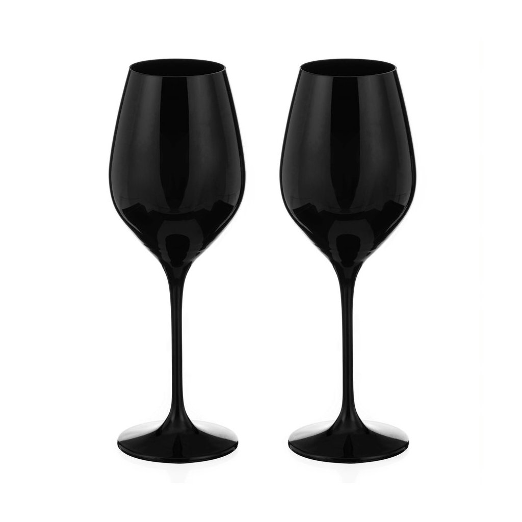 Súprava 2 čiernych krištáľových pohárov na biele víno Ghost Black s objemom 360 ml. Zdobené poháre posunú stolovanie na novú úroveň. Dodáva sa v darčekovej škatuľke.