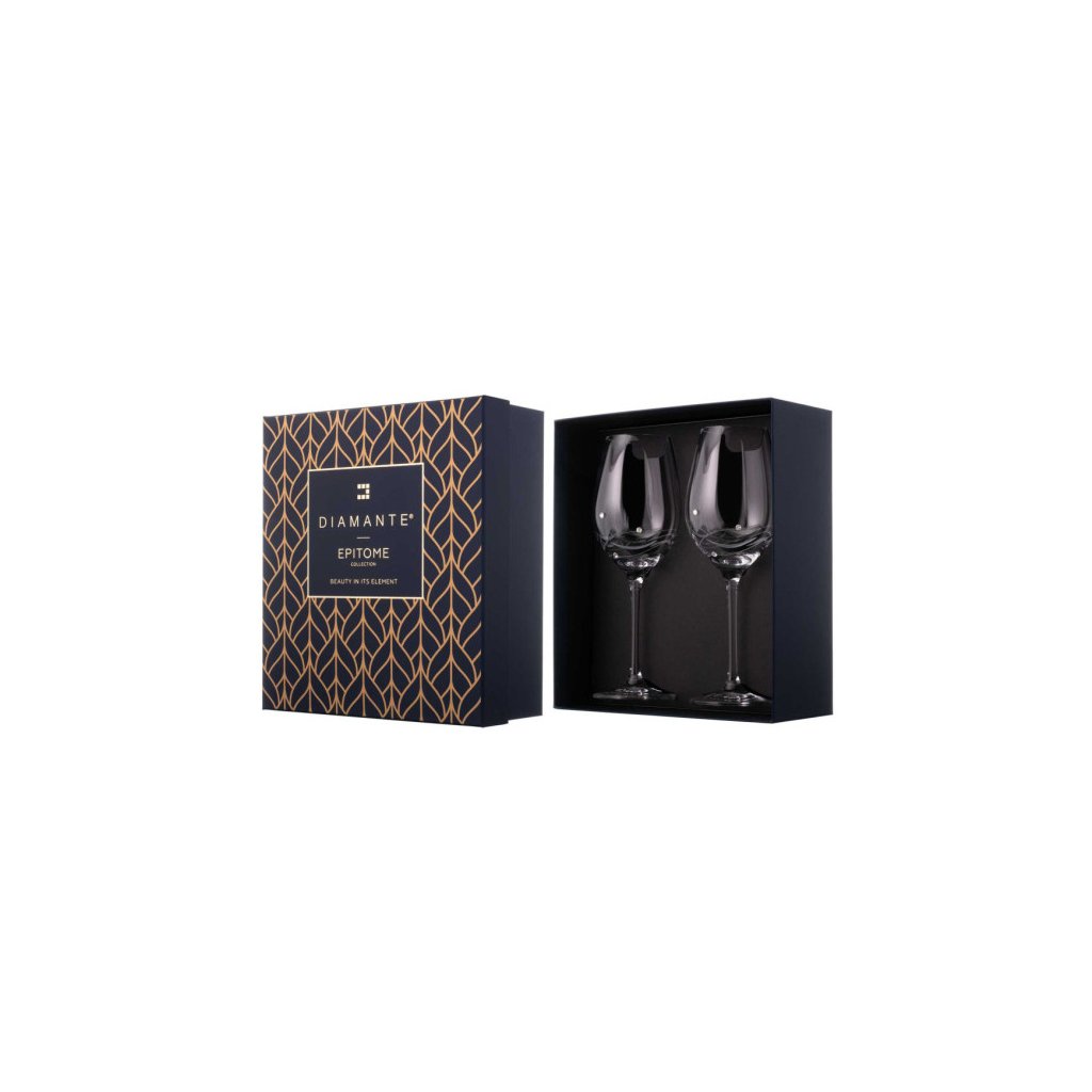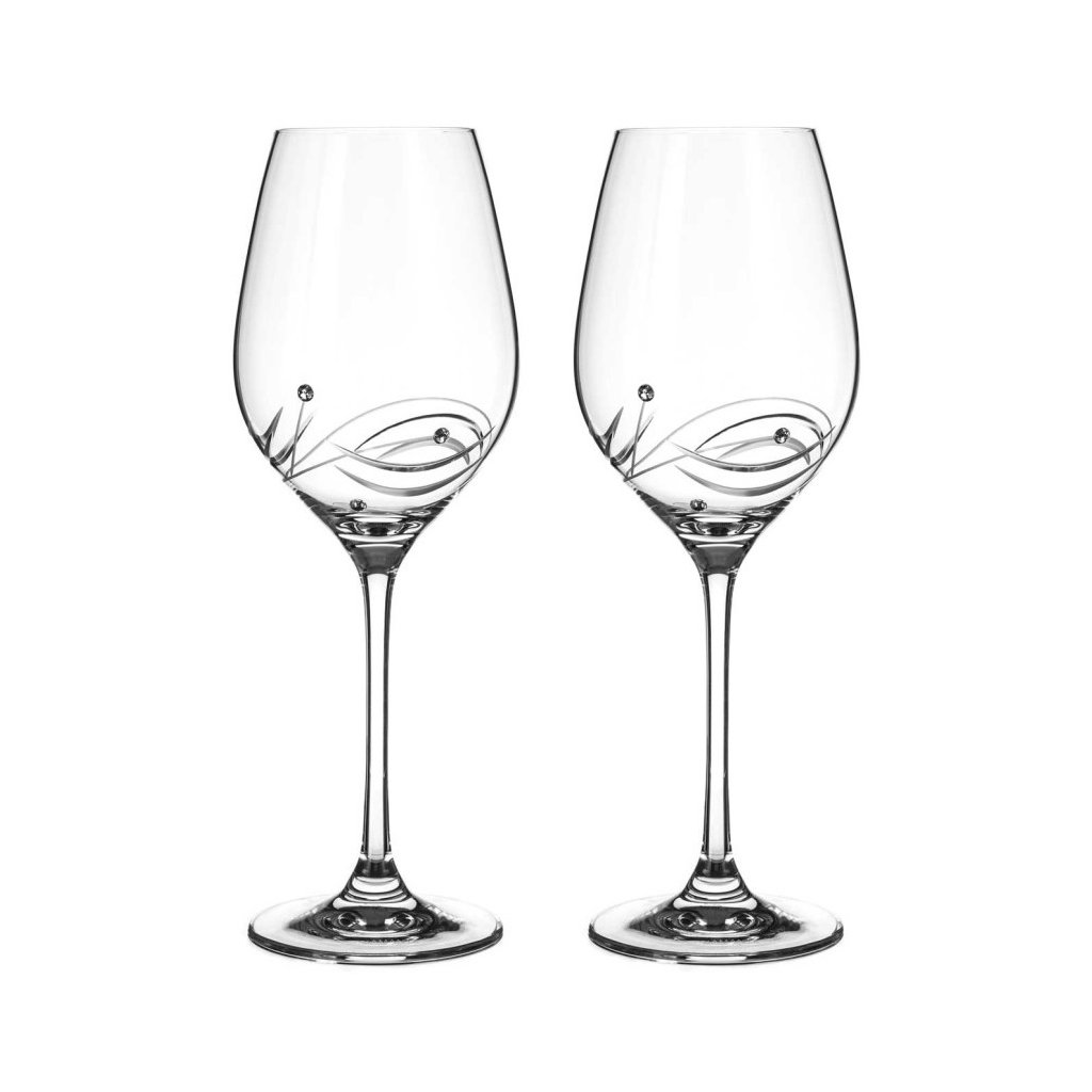 Súprava 2 brúsených pohárov na biele víno je zdobená originálnymi kamienkami Swarovski. Poháre sú vyrezané laserom s dokonalou presnosťou a dodávajú sa v saténovej darčekovej krabičke.