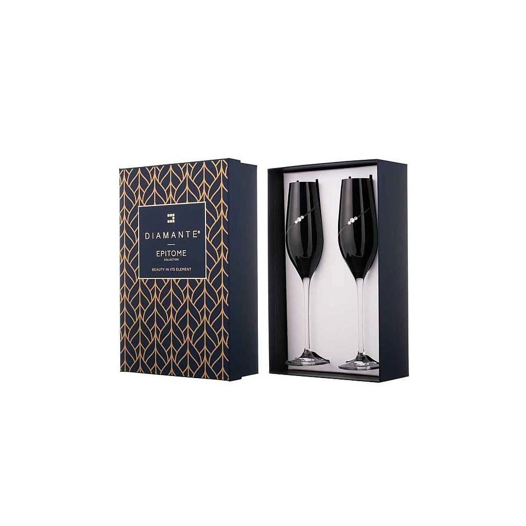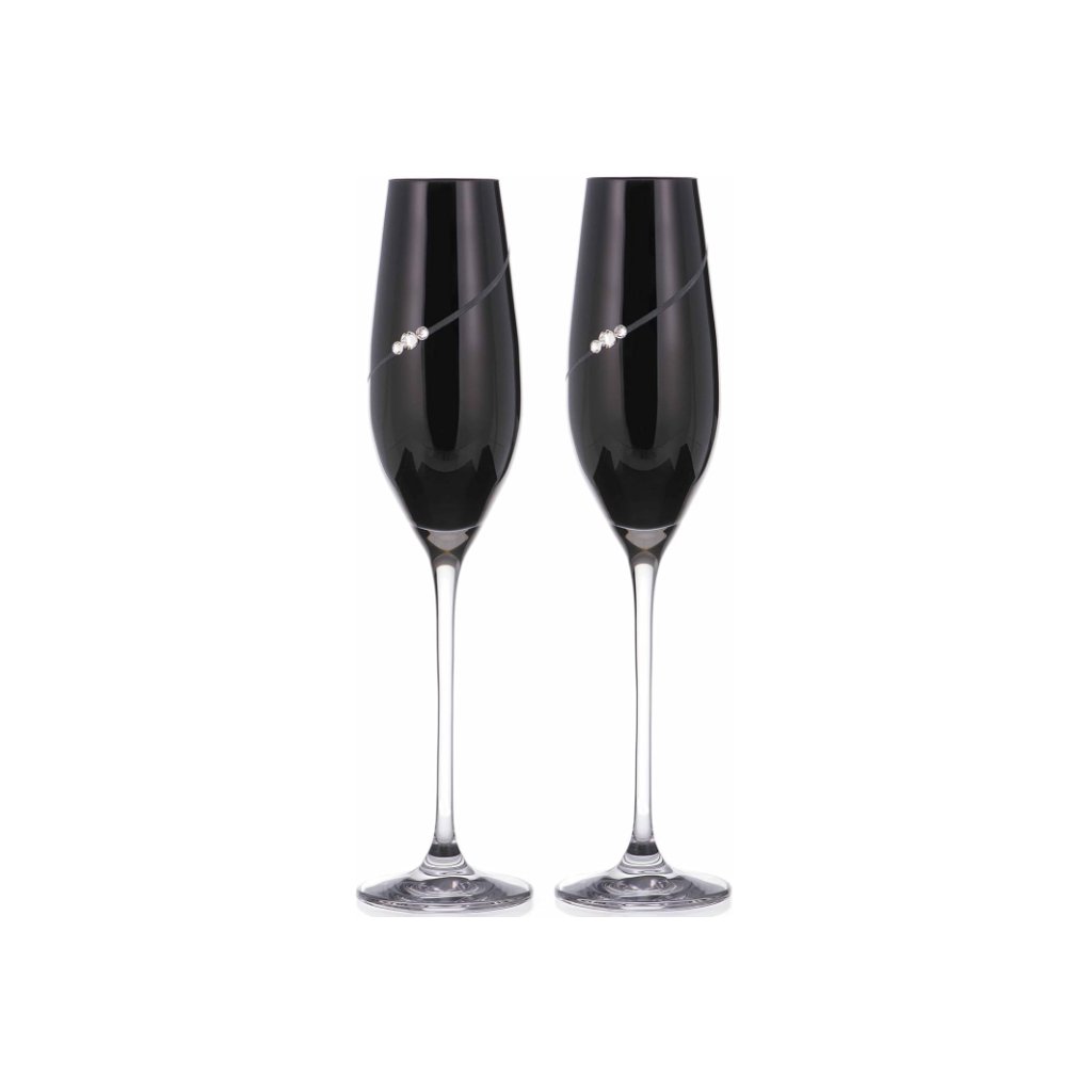 Diamante poháre na šampanské Silhouette City Black s kamienkami Swarovski 210ml 2KS