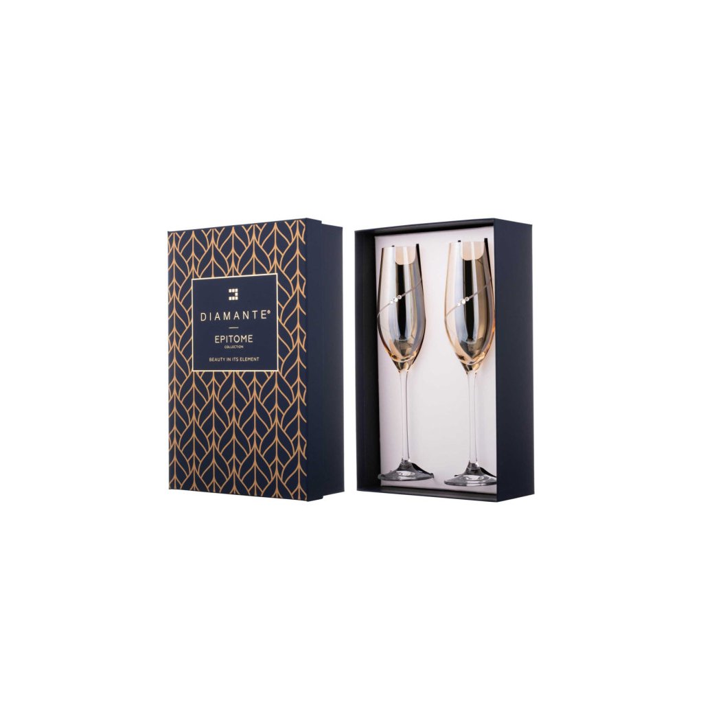 Diamante poháre na šampanské Silhouette City Amber s kamienkami Swarovski 210ml 2KS