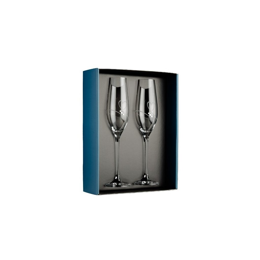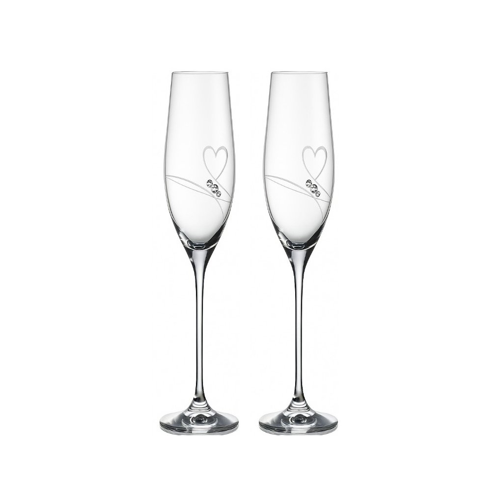 Súprava 2 pohárov na šampanské z brúseného krištáľu s motívom srdca. Vhodné ako svadobné poháre. Zdobené originálnymi kamienkami Swarovski.