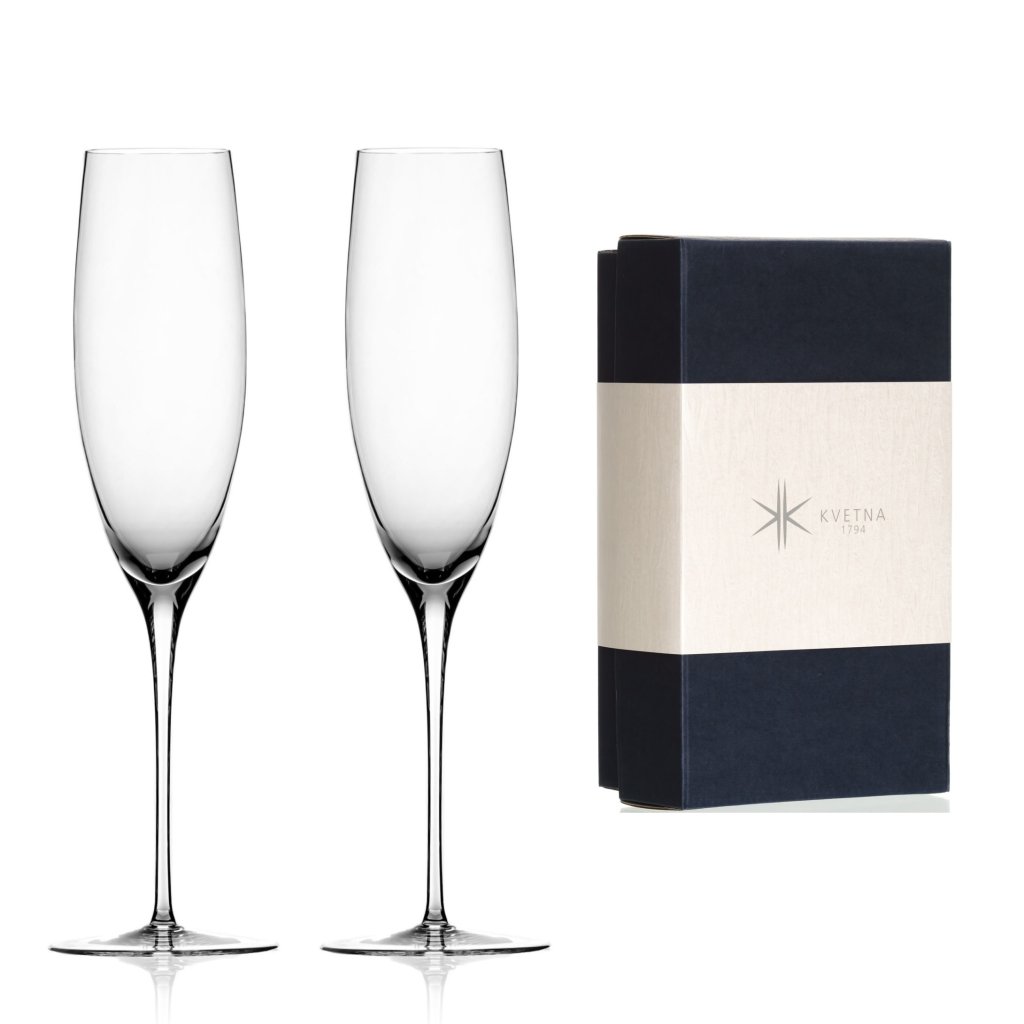 Ručne fúkané poháre na šampanské z kolekcie Telesto boli vyrobené v tradičnej českej sklárni Květná 1794 z bezolovnatého krištáľového skla. Poháre sa dodávajú v darčekovom balení po 2 kusoch.