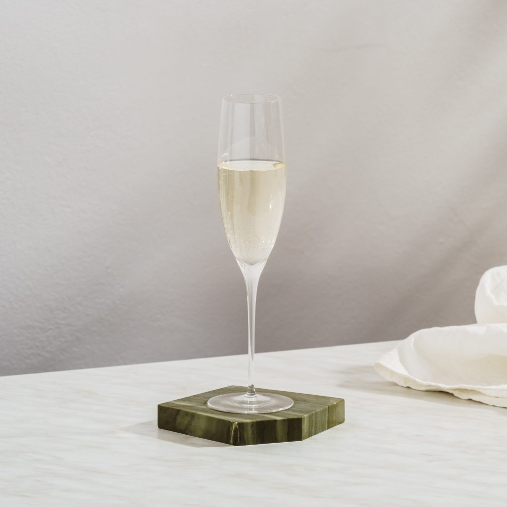 Ručne fúkané poháre na šampanské z kolekcie Telesto boli vyrobené v tradičnej českej sklárni Květná 1794 z bezolovnatého krištáľového skla. Poháre sa dodávajú v darčekovom balení po 2 kusoch.