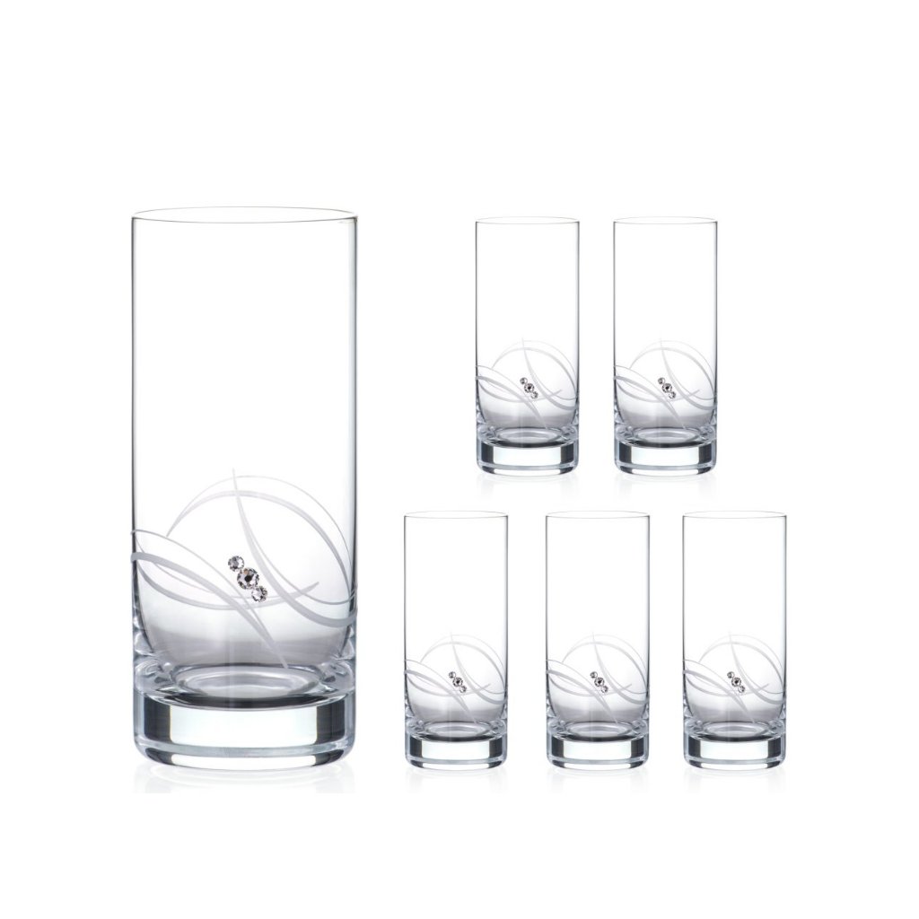 Sada 6 pohárov na koktaily, vodu, džús a iné nealkoholické nápoje. Poháre sú zdobené originálnymi kamienkami Swarovski.