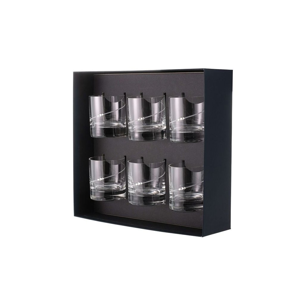 Sada 6 krištáľových pohárov, ktoré sú určené na pitie vody, nealkoholických nápojov, ale aj . Prezentované v darčekovej škatuľke s čiernym saténom. Zdobené originálnymi kryštálmi Swarovski.