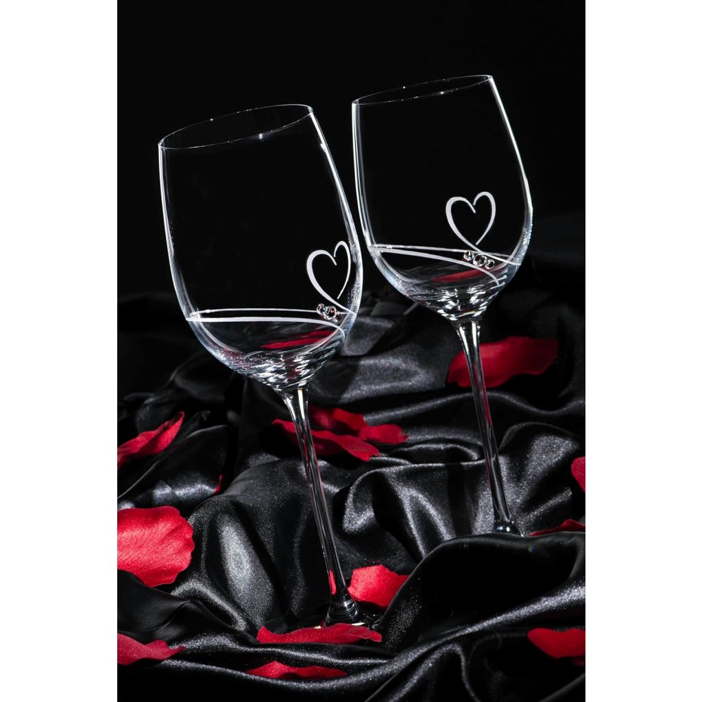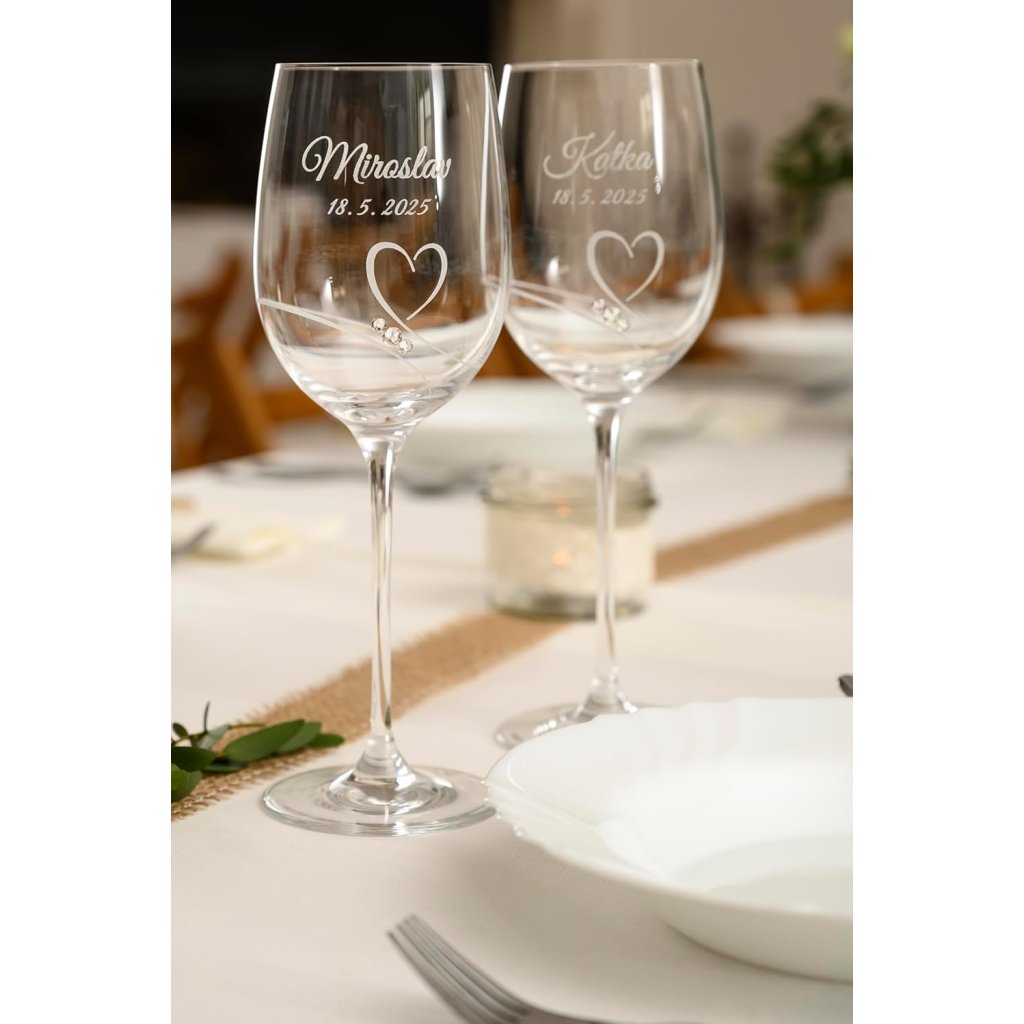 Súprava 2 pohárov na biele víno Swarovski s motívom srdca. Dekor je vyrobený laserovým rezacím strojom s dokonalou presnosťou. Krištáľové poháre sa dodávajú v darčekovej škatuľke - vhodné ako darček.