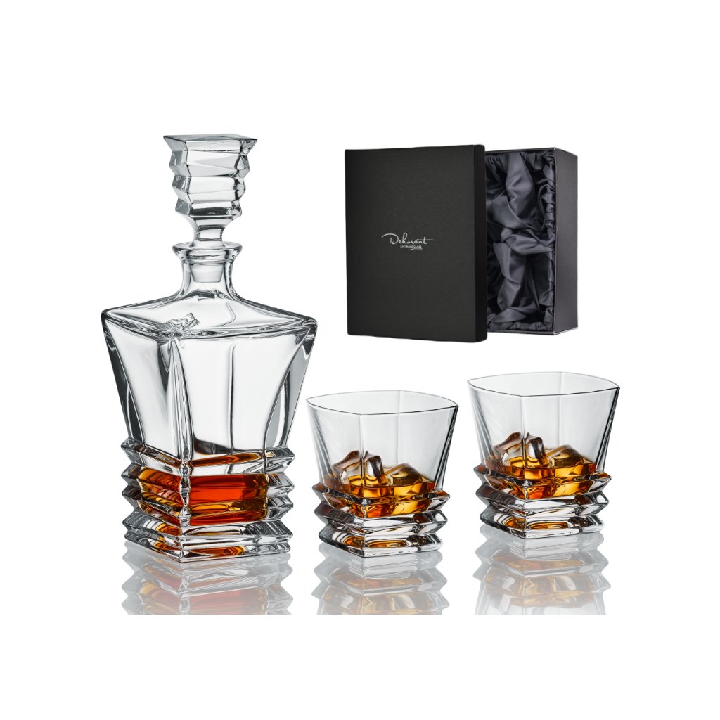 Súprava na whisky, rum a iné liehoviny z olovnatého krištáľu. Vyrobené v Českej republike v sklárni Bohemia Jihlava.