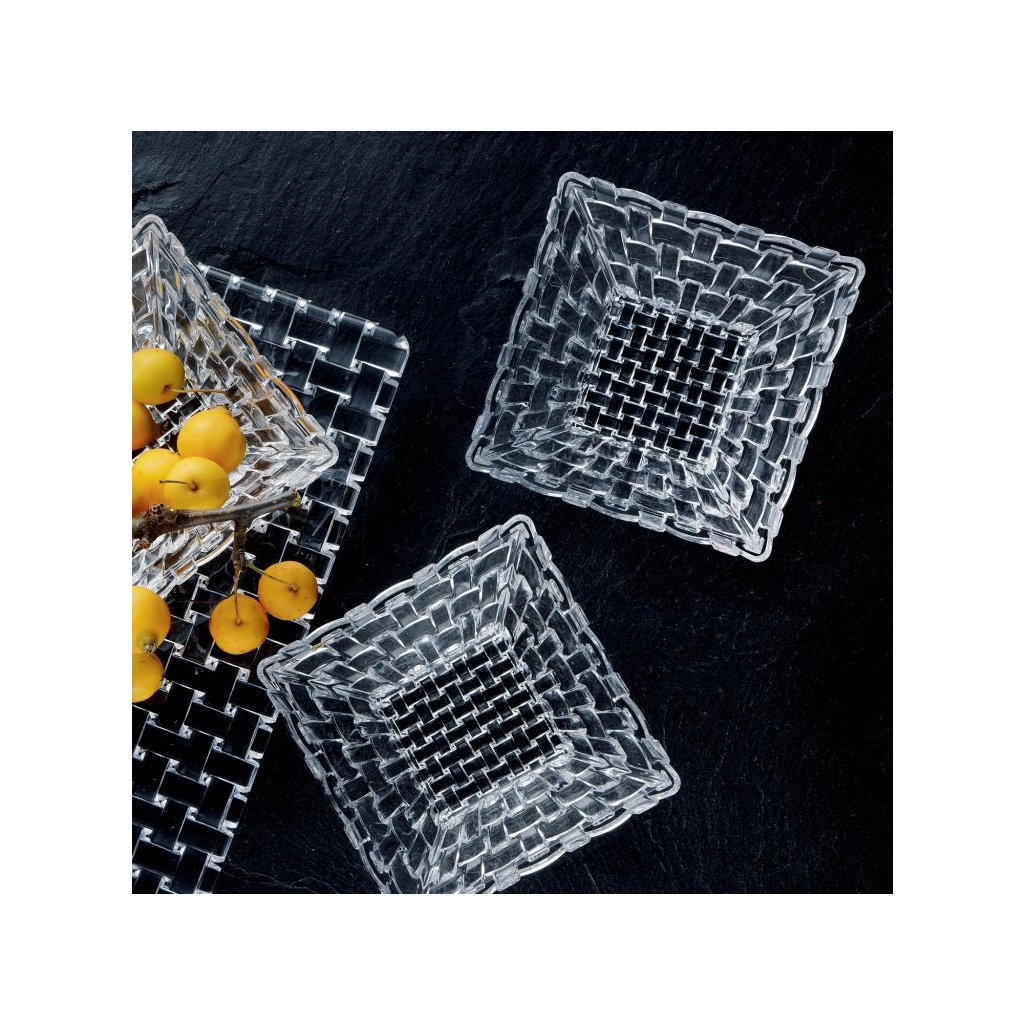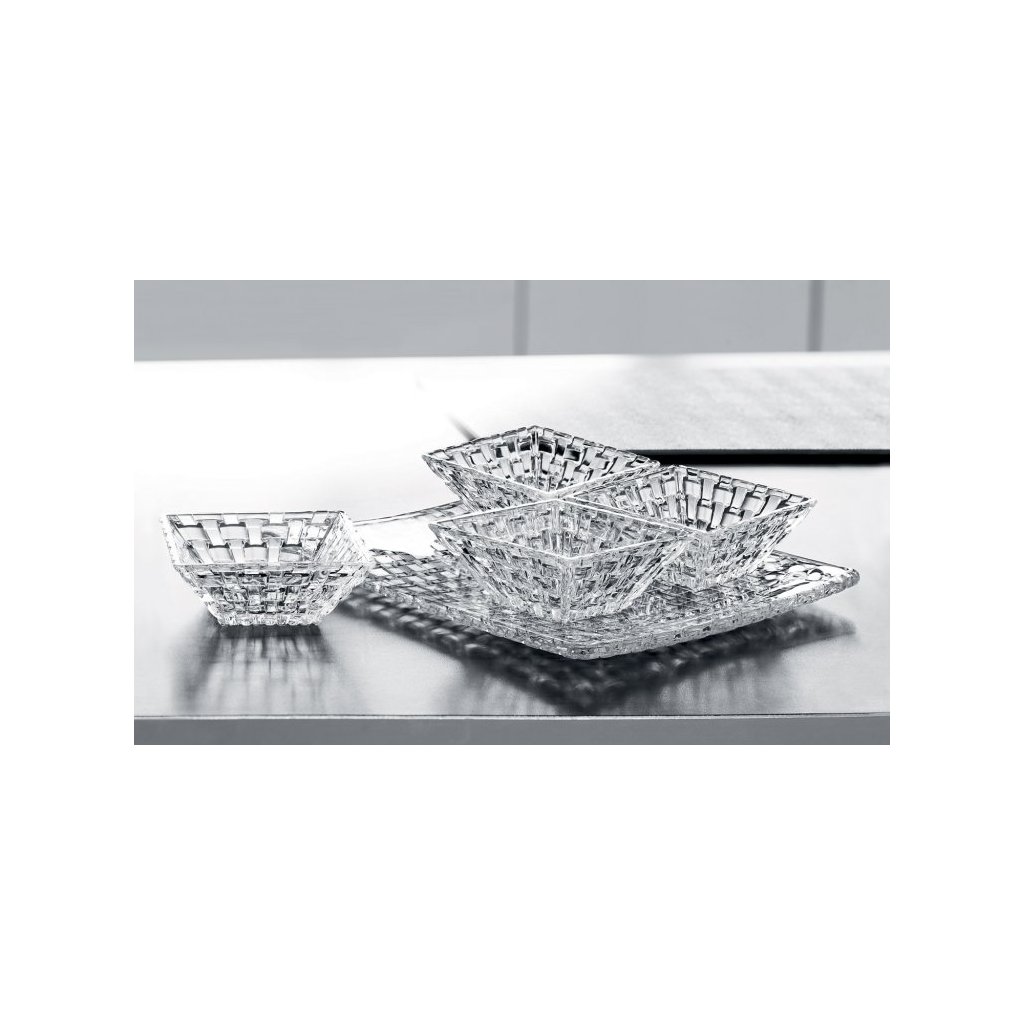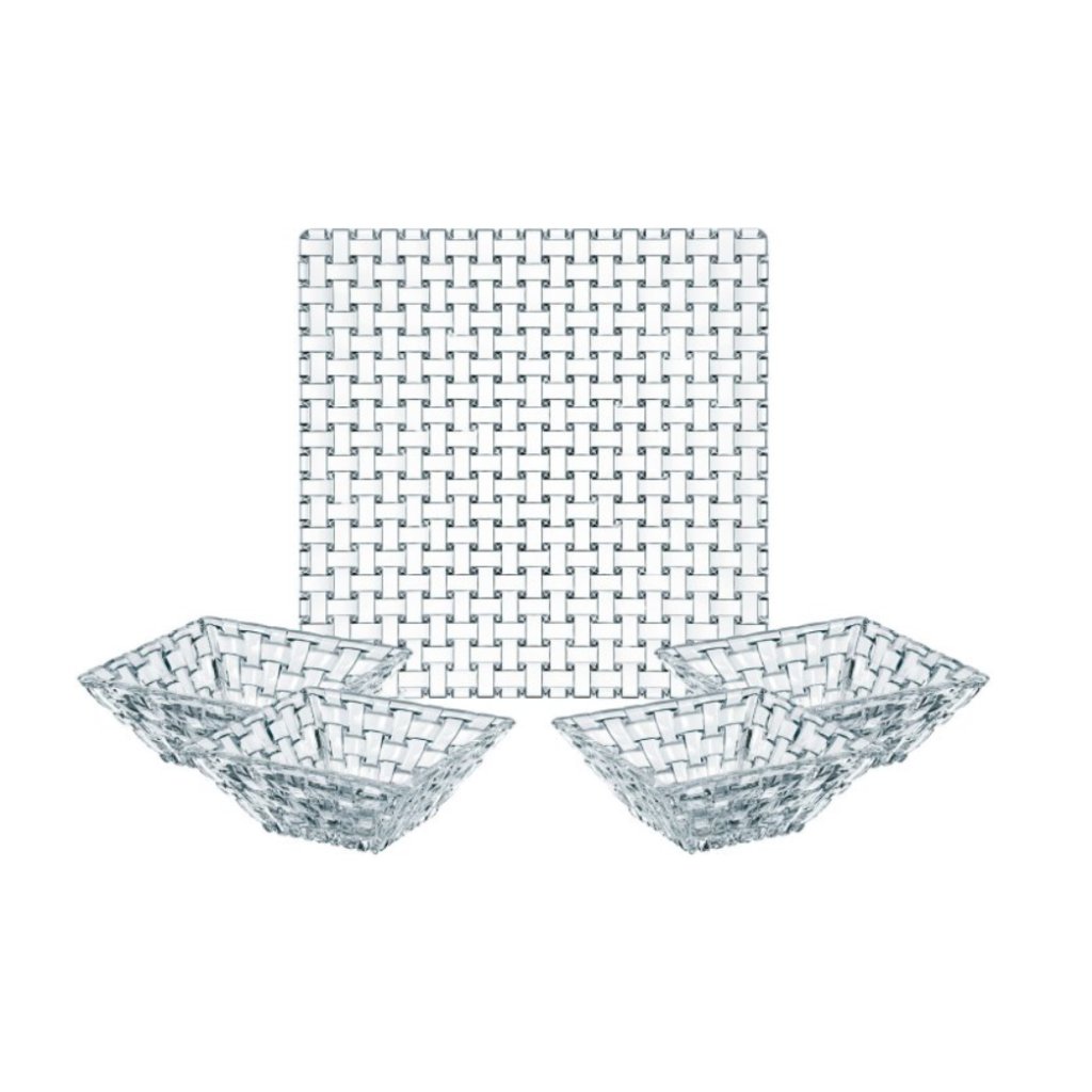 Servírovacia súprava obsahuje 1 štvorcový tanier a 4 malé misky. Súprava je vhodná na servírovanie slaných a sladkých pochúťok, ako sú sušené ovocie, orechy, olivy, rôzne druhy omáčok a iné pochúťky. Výrobky možno bezpečne umývať v umývačke riadu.